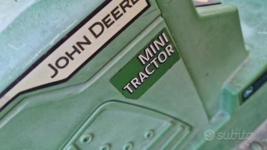 trattorino peg perego john deere Utilizzabile sia all'interno che all'esterno, su sterrati e superfici erbose ad altezza regolare. Fornito di luci di lavoro e suoni. • Età: da 1 anno in su • Batteria ricaricabile da 6 V/4,5 Ah, con presa (25 W/h) • Motore da 25 W di potenza • 2 ruote motrici • 1 marcia avanti (fino a 2 km/h) • Monoposto • Acceleratore e freno sullo stesso pedale • Ruote a elevatissima trazione con battistrada tassellato • Peso massimo trasportabile: 15 kg Edizione limitata" usato poco tempo preso che il bimbo era già grandino per questo modello ma scolorito dal sole. per il resto perfettamente funzionante
