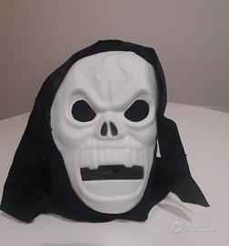 Mantello nero con cappuccio, maschera fantasma, 2 cappelli a punta, 1 borsetta a forma di zucca, 1 torcia (senza pila). Tutto in ottime condizioni