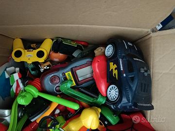 Tre scatole di giocattoli vari e un casco per bimbi €25.