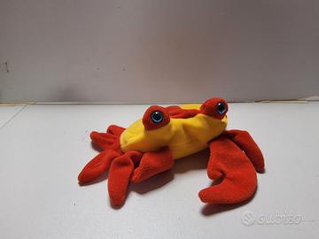 Peluche vintage da collezione della storica serie Trendy Peluche DeAgostini: il simpaticissimo granchio rosso e giallo, con occhioni azzurri e chele buffe.