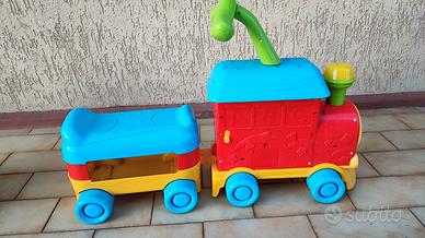 Trenino cavalcabile con manubrio, il pezzo dietro è aperto per poter inserire giochi o qualsiasi altra cosa.