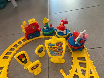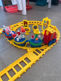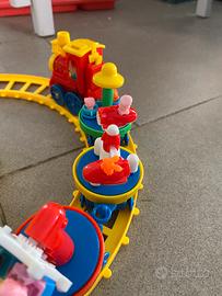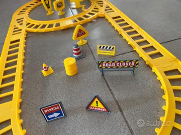 Trenino giocattolo con pista deviabile sulla curva dell’8 - completo di motrice e 3 ‘carrozze’ - compreso di segnali stradali (vedi foto) - pile nuove escluse!