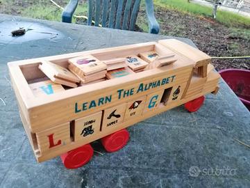Vendo trenino in legno con tessere alfabeto e immagini varie, il gioco dovrebbe essere vintage anni 80, buone condizioni, spedizione in tutta Italia