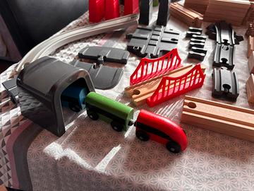 Giochi per bambini Circuiti in legno con vari tipi di treno, manuali e con batteria Ponti stazione gallerie Mix brio ikea e playset Trattabile