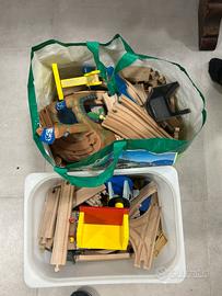 Doppio trenino in legno con scenari