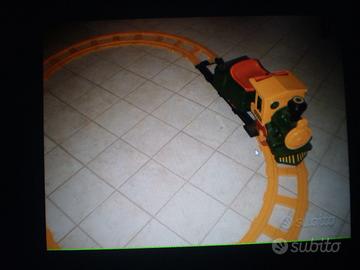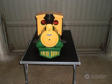 Trenino cavalcabile versione classica del Santa Fe’ per colori e decalcomanie con pista ovale formata da n. 12 binari curvi con batteria ricaricabile e caricabatteria . Il trenino è funzionante ha la batteria nuova. È un giocattolo in buone condizioni ha il fischio di un treno a vapore ha due pulsanti uno per la marcia l'altro per il fischio, ottime condizioni anche estetiche Buon acquisto, sarà un grande divertimento per i vostri bambini.