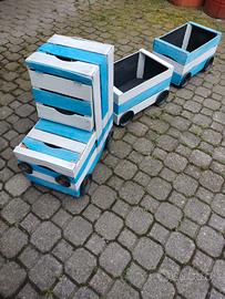 Trenino fatto a mano con le casse della frutta.