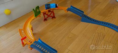 pista trenino Thomas completa di tutti i suoi pezzi pari al nuovo. Nella pista è presente uno scambio per poterla unire ad altre piste della stessa serie (vedere miei annunci). il trenino è elettrico e in questa pista corre ad alta velocità nelle curve paraboliche, specialmente in quella sopraelevata dove scorre su 2 ruote in "piega".