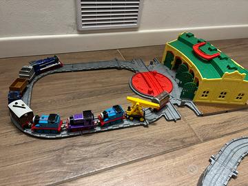Pista trenino thomas con autorimessa per treni con vagoni inclusi. No spedizione consegna a mano