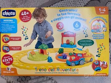 Vendo trenino elettrico,funziona perfettamente,bilingue italiano e inglese,completo di scatola,unico difetto manca un pezzo piccolo del ponte ho cerchiato sulla foto,quello marrone,non sono riuscita a trovarlo,per il resto ce tutto!