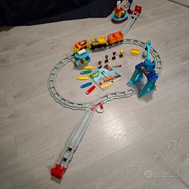Set completo lego Duplo 10875 + ponte set 10872 e binari aggiuntivi compatibili. Il set non ha la scatola originale ma contiene tutti i pezzi ed è funzionante. Le istruzioni sono incluse, manca la copertina.