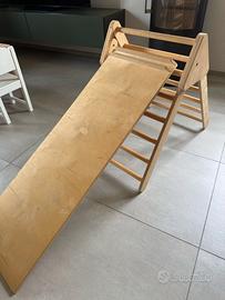 Come da titolo vendo bellissimo Triangolo di Pikler compreso di Triangolo, rampa e cubo. È un prodotto artigianale di alta qualità costruito con vero legno. Le condizioni sono ottime, normali segni di usura come da foto. Consegna a mano su Modena, Bologna, Reggio Emilia Verona.