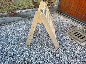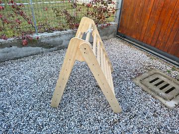 Vendo triangolo di Pikler in legno massello, adatto a bimbi da 6 mesi a 6 anni. Struttura robusta e stabile, superfici levigate, vernici non tossiche e antiscivolo. Usato con cura in ambiente domestico, senza danni strutturali. Ideale per arrampicata, equilibrio e gioco motorio libero.