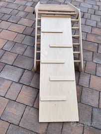 Il set triangolare si ispira alla pedagogia Montessori e si concentra sul gioco guidato dai bambini e sullo sviluppo fisico. Questa struttura per arrampicata promuove la sicurezza, l'equilibrio e l'indipendenza dei più piccoli, offrendo al contempo un ambiente sicuro e stimolante da esplorare.