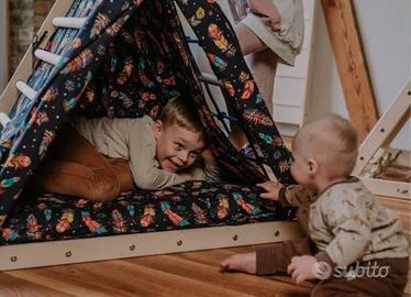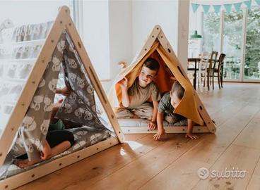 Pensato per sostenere l'apprendimento attraverso il movimento, il Triangolo Pikler. È ideale anche in combinazione con i scivoli, la tenda tana di volpe e il cuscino bradipo.