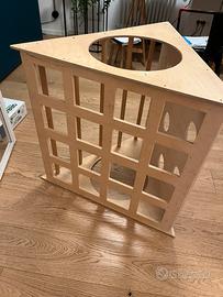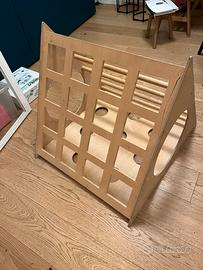Triangolo Pikler in legno. Dimensioni: base triangolare 80 cm per lato, altezza 74 cm