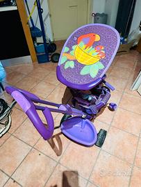 Triciclo della fisher price per bambina modello 3 in uno. Si parte con il modello con sediolone di sicurezza e manubrio di direzione per adulti fino ad arrivare al triciclo per bambine autonome.