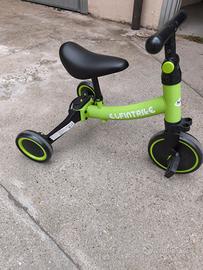Triciclo verde trasformabile in bici adatta a bimbi fino a 3 anni