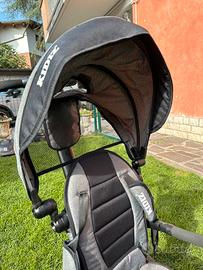 • Un ampio tettuccio pieghevole protegge dal sole con un pannello supplementare
