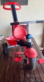 Vendo triciclo SMART TRIKE SPORT: il manico è regolabile e rimovibile e di facile impugnatura La seduta è morbida e imbottita per la comodità con la barra di protezione e con cintura di sicurezza Completo di tettuccio per il sole rimovibile e regolabile poggiapiedi pieghevoli e pedali