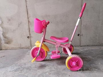 Triciclo a pedali con manopola spinta manuale removibile, adatto per età 1-3 anni