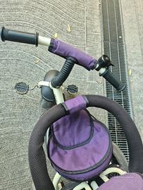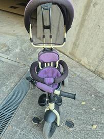 Comodo triciclo per bambini. Usato praticamente pochissimo. 2 in 1 poiché c'è la possibilità di accompagnare il bimbo o bimba con un pratico manubrio collegato alla ruota oppure il bimbo o la bimba può guidare in autonomia. Poggiapiedi reclinabile, comoda ampia tasca portaoggetti, cappottino parasole (estraibile.si può anche togliere). Inoltre c'è anche un campanello. Dispone di 3 ruote in EVA che garantiscono la massima stabilità.