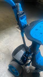 Triciclo bimbo con cappottina parasole e maniglione per spingerlo.