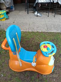triciclo bimbo marca chicco colore arancio e azzurro funzionante a pile suona