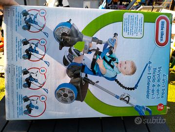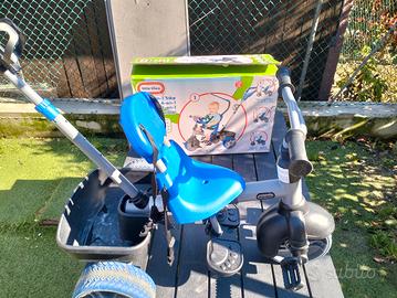 Triciclo in ottime condizioni, usato pochissimo come da foto, completo di tutti gli accessori come illustrato nella confezione.