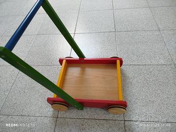 Triciclo in legno in ottimo stato per bimbi e anche bello come arredamento, carrettino in legno e seggiolino per bimbi per l'automobile.