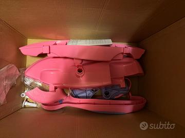 Triciclo Chicco 4 in 1 per: dondolare, spingere, camminare, cavalcare. Per bambini 9-36 mesi. Fucsia e rosa. Tenuto bene. Completo di tutti i pezzi. Volante multifunzione.