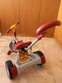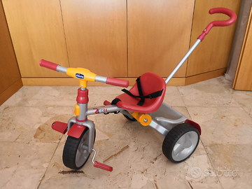 Usato ma tenuto bene, vendo bellissimo triciclo a pedali della Chicco con freno a mano e simpatico portaoggetti posteriore. Il manubrio è regolabile in altezza. La seduta è con cintura di sicurezza a strappo. È inclusa nel prezzo anche una pratica borsa da trasporto, per mettere il triciclo ripiegato in auto come da foto.