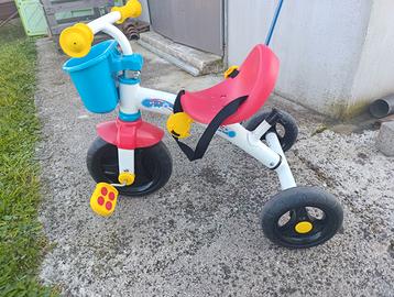 Triciclo usato pochissimo comprensivo di manico per l' adulto per guidare il triciclo