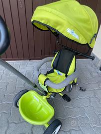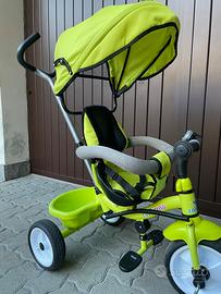 Bellissimo e in ottime condizioni! Cresce col bambino da 1 a 3 anni. Ha i poggiapiedi e il manubrio per essere guidato dall’adulto. Quindi è un’ottima alternativa al passeggino quando per esempio si vuole andare a passaggio o al parco. La seduta si può ruotare anche in senso contrario di marcia (vedi foto) Il parasole, le cinture e i braccioli sono rimovibili così da poter essere usato come semplice triciclo una volta cresciuto. Bellissimo anche il colore verde lime 🍋🟩 unisex Pulito e disinfettato. Disponibile per visione !