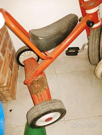 Triciclo in ferro, perfettamente funzionante presenta solo parti con ruggine.