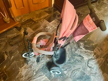 Prodotto valido sia per passeggino che per triciclo, in quanto si può togliere la parte superiore e posteriore. Comodissimo per uscire perché ha cinture di sicurezza, parasole, cesto portaoggetti, porta borraccia, porta telefono, freni, inoltre ì piedi della bimba si possono mettere sia nei pedali che nell'apposito appoggia piedi. L'adulto tiene il manubrio per girare