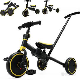 Il triciclo 3 in 1, può essere: un cavalcabile a tre ruote, una mini bici senza pedali e un triciclo classico con pedali . Sarà un ottimo compagno per le attività all'aperto. è adatto ai bambini da 12 mesi a 5 anni circa con un peso massimo fino a 25 kg. le tre opzioni sono appropriate per I bambini di diversa altezza e peso: