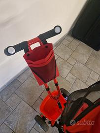 Triciclo evolutivo Vitamina G Con parasole, tasca porta oggetti e vasca porta oggetti.