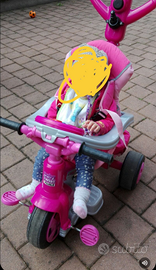 Triciclo Baby Twist della Feber, rosa e fucsia, completo di tutti gli accessori: smontato e riposto nella sua confezione originale.