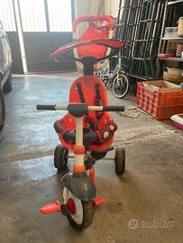 Descrizione: ideale dai 10m ai 36 mesi realizzato con seduta ergonomica completa di riduttore, un comodo maniglione che permette al genitore il trasporto e l'orientamento del triciclo in tutta sicurezza con ruota anteriore piroettante ed infine un comodo parasole per riparare il bambino dal sole.