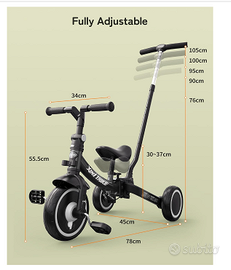 Molteplici modalità di guida: il design senza tempo di questo triciclo per bambini offre più modalità di guida, tra cui la modalità di spinta dello sterzo genitore, la modalità triciclo, la modalità bici da equilibrio, la modalità girello e altro ancora. Perfetto per sviluppare l'equilibrio e la mobilità per un divertimento di guida istantaneo.