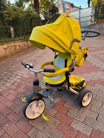 Geneesi treciclo multifunzione come da foto, marca baby’s clan. Il triciclo si gira sia fronte mamma che fronte strada, il bambino puo essere accompagnato o altrimenti può andare da solo. Usato pochissimo