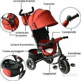 triciclo con manico, marca i lovely, completo di tutti gli accessori, come da sito internet, ruote in gomma, manico e cappottina smontabili x trasporto in macchina.