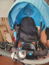 seduta girevole, portaoggetti sottostante, cappottina parasole.