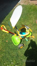 Triciclo multiuso con cappottina e manubrio.