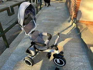 Triciclo con solida struttura in metallo maniglione regolabile e removibile fodera antipioggia capottina parasole regolabile bortabottiglia comodo cestello portagiochi pedali antiscivolo