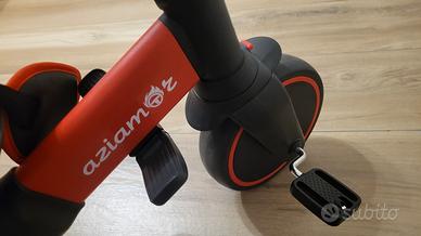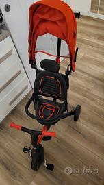 Vendo bellissimo triciclo evolutivo Aziamor, colore nero e rosso, in condizioni eccellenti. È la soluzione perfetta per seguire la crescita del tuo bambino, passando da comodo passeggino a vero e proprio triciclo indipendente. 🌟 Caratteristiche Principali: Design Evolutivo: Si adatta alle diverse fasi della crescita (dai 10-12 mesi fino ai 3-5 anni circa). Massimo Comfort: Seduta imbottita con schienale ergonomico e poggiatesta regolabile. Sicurezza Totale: Cintura di sicurezza a 5 punti e barra di protezione frontale apribile/rimovibile. Cappottina Protettiva: Ampia capote rossa parasole (regolabile e removibile) con inserto in rete per la ventilazione. Guida Parentale: Maniglione posteriore direzionale per permettere al genitore di guidare in totale comodità. Praticità: Ruote silenziose e resistenti, pedali antiscivolo e poggiapiedi richiudibili per i più piccoli. Salvaspazio: Struttura robusta ma leggera, facilmente richiudibile per il trasporto in auto o per riporlo in casa. 📋 Stato del prodotto: Condizioni: Ottime, usato pochissimo e tenuto sempre al chiuso. Colore: Nero con dettagli rossi vivaci. Pulizia: Sanificato e pronto all'uso.