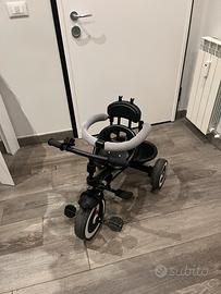 Triciclo passeggino ideale per far abituare i bambini a muoversi in autonomia. Puo essere guidato da un adulto disattivando i pedali oppure puo essere guidato dai bimbi. Acquisendo progressiva autonomia grazie alle pedane ritraibili. É dotato di parasole e protezioni per il corpo rimovibili