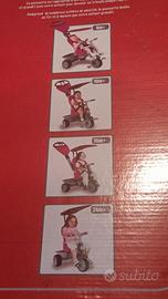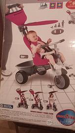 Triciclo Smart Trike Recliner per bambini 1 , 2, 3 anni E OLTRE Sedile imbottito, cinture di sicurezza, pedali antiscivolo, parasole , cestino portaoggetti. Maniglione per spingere il triciclo come un passeggino. Ancora con la sua scatola.