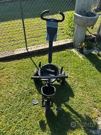 Triciclo per bambini nero, può funzionare anche come passeggino.